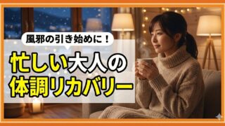 「風邪ひきそう…」と感じた忙しいあなたへ。翌日に持ち越さないための仕事の切り上げ方、湯船で深部体温を上げるコツ、胃腸に優しい温活レシピを解説。晩酌や筋トレを一日お休みして、自分を労わる「大人の体調調整術」で、明日を元気に迎えましょう。