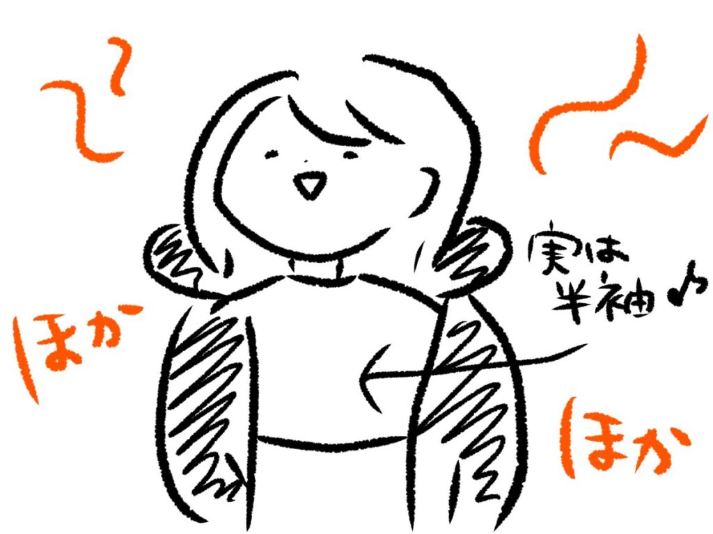私はそこまで暑がりではないので、この「薄手の長袖」がベスト。