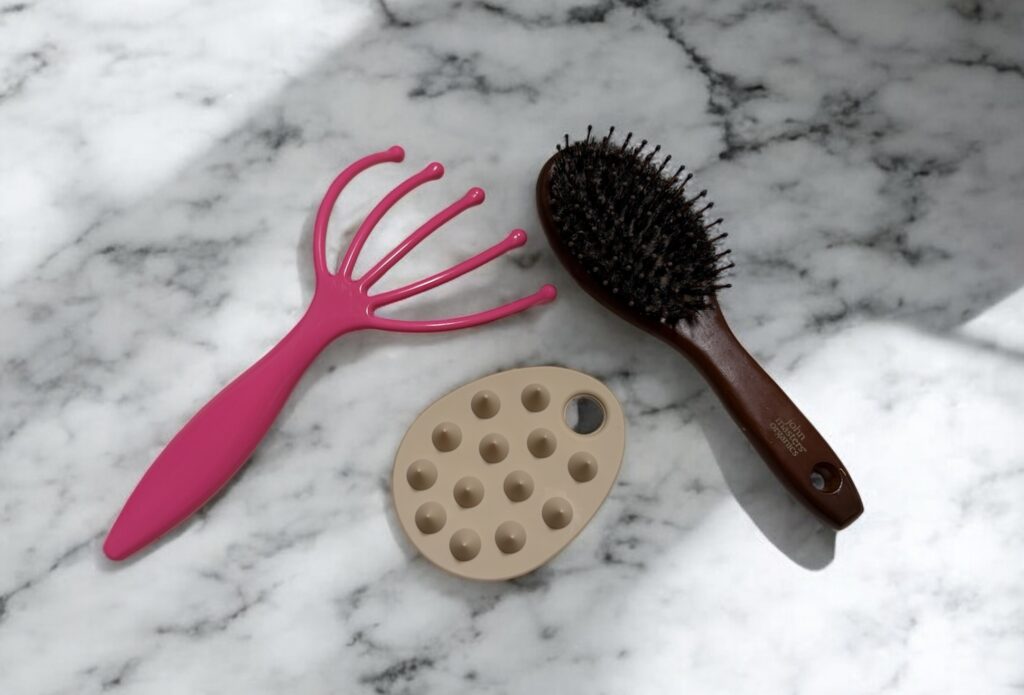 それからというもの、私は意識的に「頭皮をほぐすこと」を習慣に取り入れました。 最初は自分の指で、シャンプーのついでにマッサージをするところからスタート。