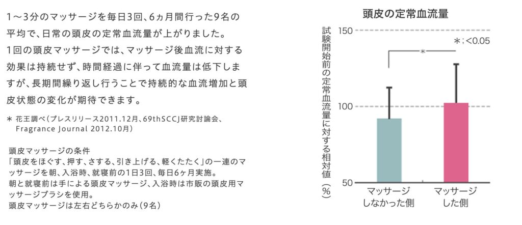 ちなみに、花王のサイトでは頭皮マッサージによる血流改善のデータも。もっと知りたい方はぜひ公式サイトをご覧ください。