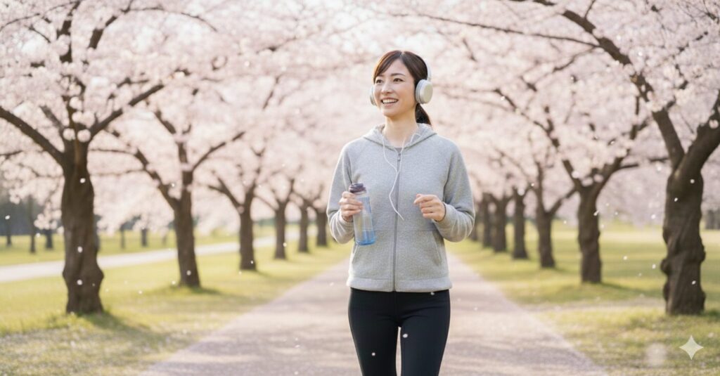 - 朝の通勤時間(脂肪燃焼のゴールデンタイム): 朝の空腹時は体内の糖が少ない状態。この時に歩くと、体はエネルギー源として「脂肪」を優先的に使います。私は、朝の駅までを少し早歩きにするだけで、1日の燃焼スイッチが入るのを感じました。