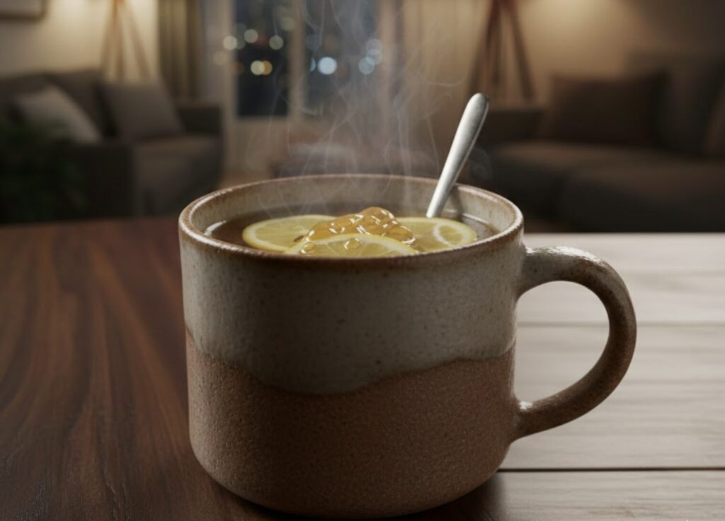 お酒の代わりに、今日はこれ。ビタミンC補給と、はちみつの殺菌作用で喉のイガイガをケアします。