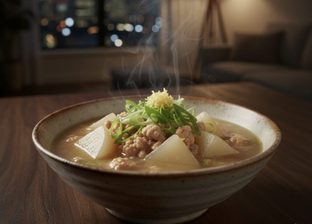 カブと鶏ひき肉のとろみスープ
