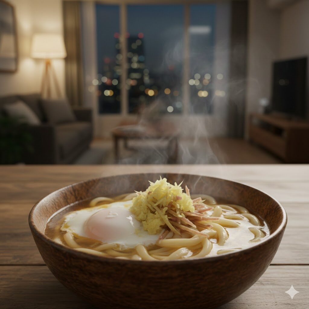 冷凍うどんとおだし、卵があれば完成。